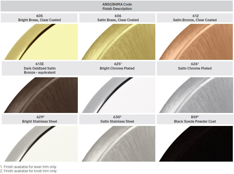 - Cylinder Finish: Cylinders are supplied in US3 Polished Brass and US26D Satin Chrome Finish only.