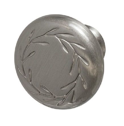 The Nature's Splendor Collection Knob is made from zinc. This Amerock knob has a 1.3" diameter and a choice of finishes.