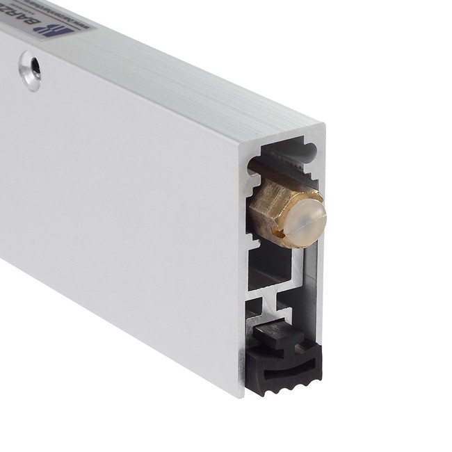Barzen Regular Duty Soundproofing Surface Mounted Automatic Door Bottom is designed for wooden or metal doors. Fitted with a High Quality Sponge Neoprene seal which automatically lowers as the door closes. Â Can fill gaps up to .5". Available in selection of finishes.