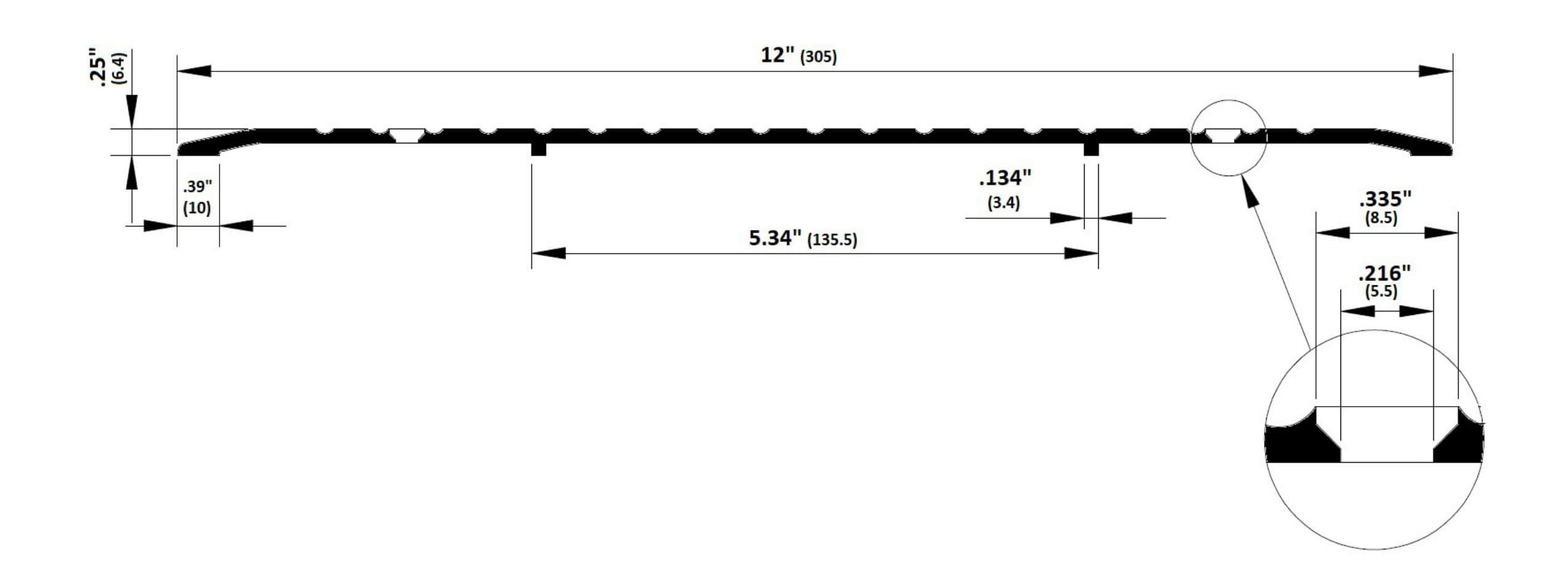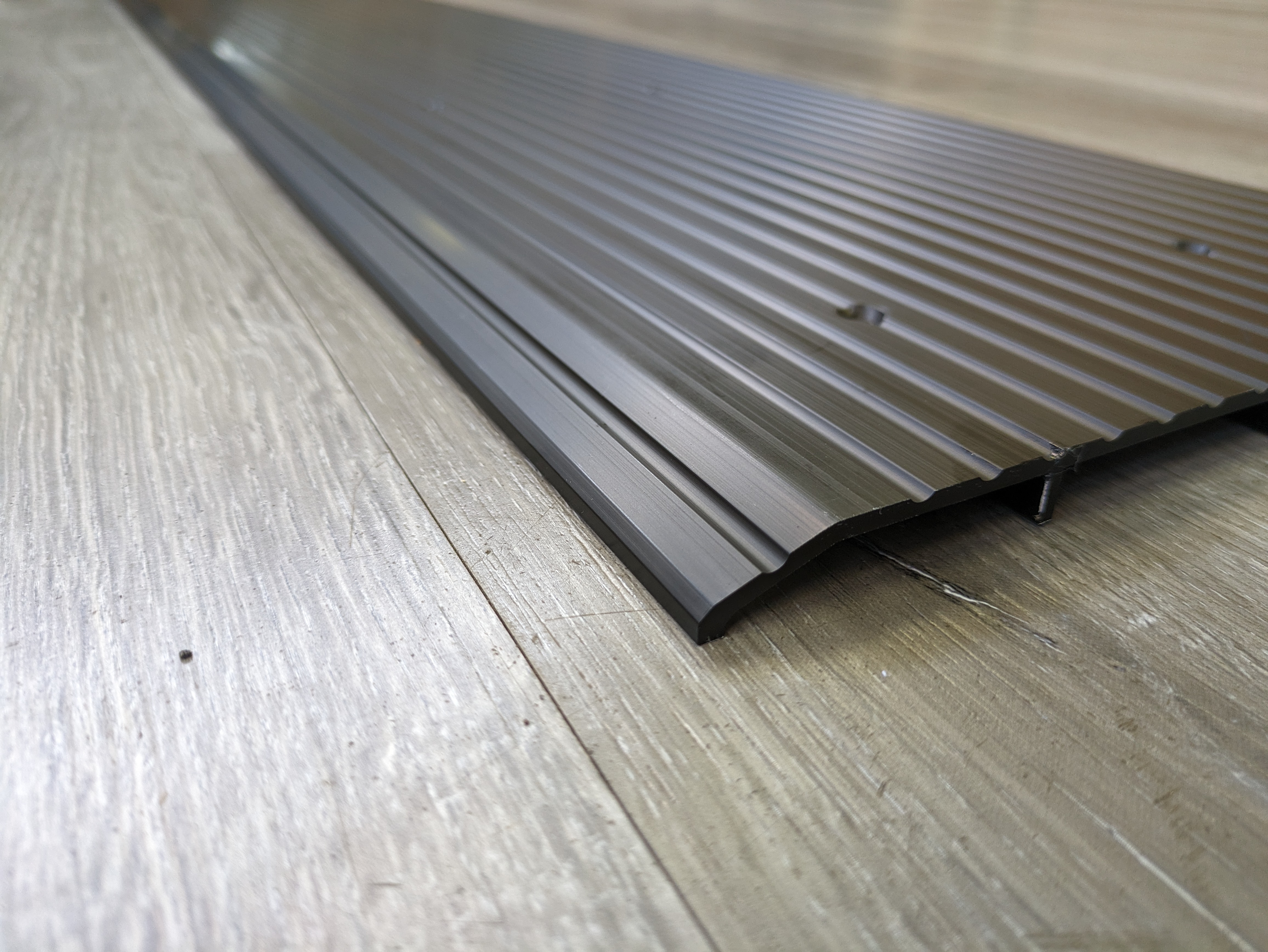 Barzen #TH10 Half Door Threshold is a simple way to correct a floor offset between rooms and eliminate the tripping hazard associated with differences in floor surface heights. This half threshold is ADA Compliant and fills offsets of .5" and has a 10" width. Available in a Black anodized finish, in sizes 48" and 72"