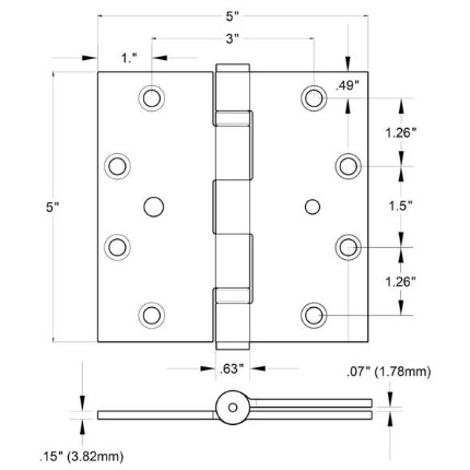 For a list of similar items, see our Deltana, Plain Bearing, Brass, Standard Weight, 5 Knuckle, Full Mortise Hinge, 5" x 5"