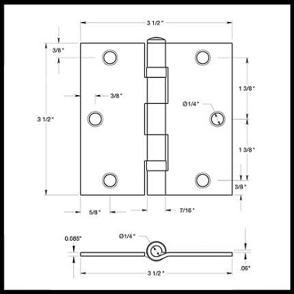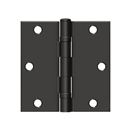 This Deltana Hinge is a Residential, Full Mortise, 5 Knuckle Ball Bearing Hinge, and is made of Steel. Size of hinges is 3-1/2" x 3-1/2" with Square Corners and Button Tip Finials. See below for available finishes.