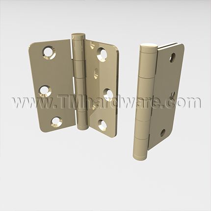 Deltana DSB35R4-R is a Residential, Full Mortise, 5 Knuckle Plain Bearing Hinge, with 1/4" Radius Corners. Made of Solid Brass. Size of hinges is 3-1/2" x 3-1/2" with Button Tip Finials. Available in choice of finishes.