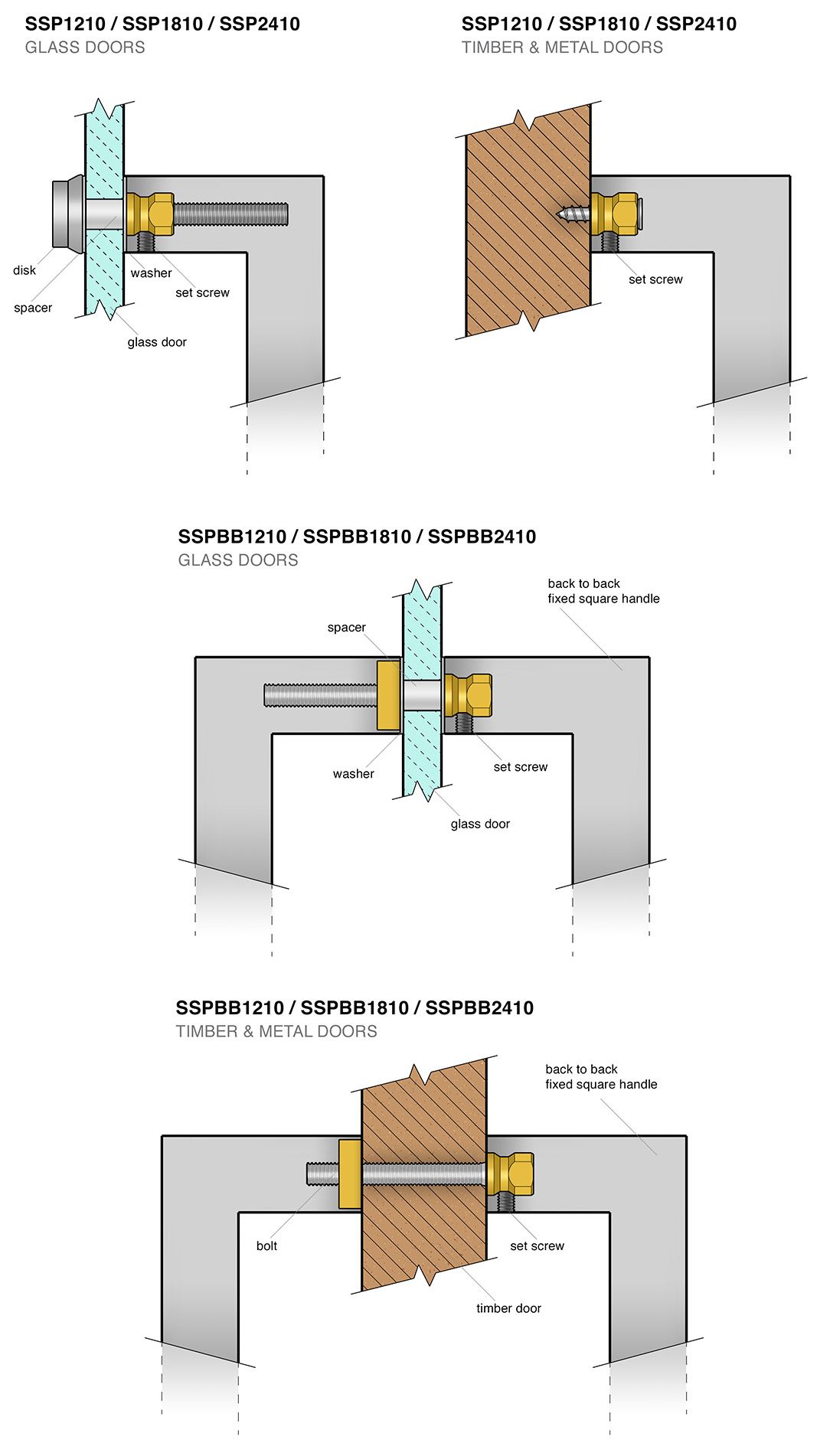 Product TypeSingle Door Pull - Thru Bolt Mount, Push/Pull Set - BTB Mounting