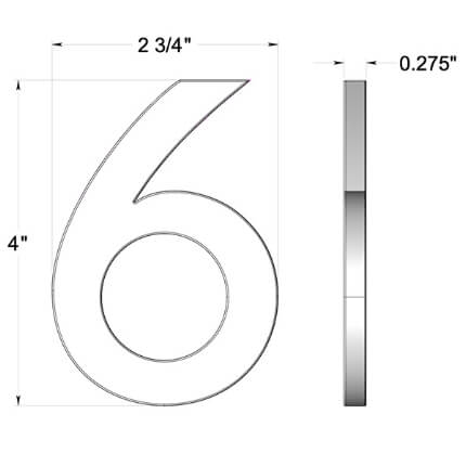 Deltana Stainless Steel Modem Numbers, B Series with Riser, No"6" Digit, 4" Height are perfect for residential or commercial uses, and they have a simple modem appearance that stands out in your house or business. Can be mounted on a surface or a rose. They come in a variety of elegant finishes.