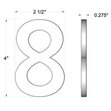 Deltana Stainless Steel Modem Numbers, B Series with Riser, No"8" Digit, 4" Height are perfect for residential or commercial uses, and they have a simple modem appearance that stands out in your house or business. Can be mounted on a surface or a rose. They come in a variety of elegant finishes.