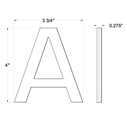 Deltana Stainless Steel Modern Letters, E Series with Risers, Letter "A", 4" Height