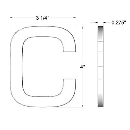 Deltana Stainless Steel Modern Letters, E Series with Risers, Letter "C", 4" Height
