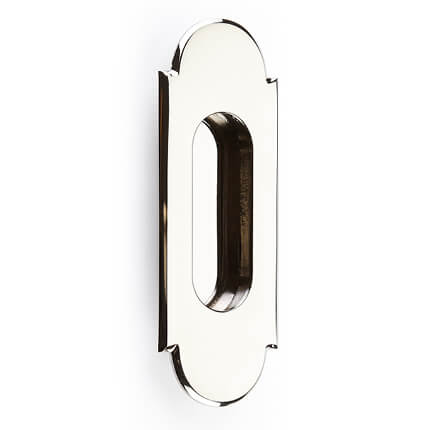 The Emtek 2205 Brass Flush Door Pulls with Classic Curved #8 Design is a classic for sliding doors and pocket doors. Sized 1-7/8" x 5". Available in different Finishes.