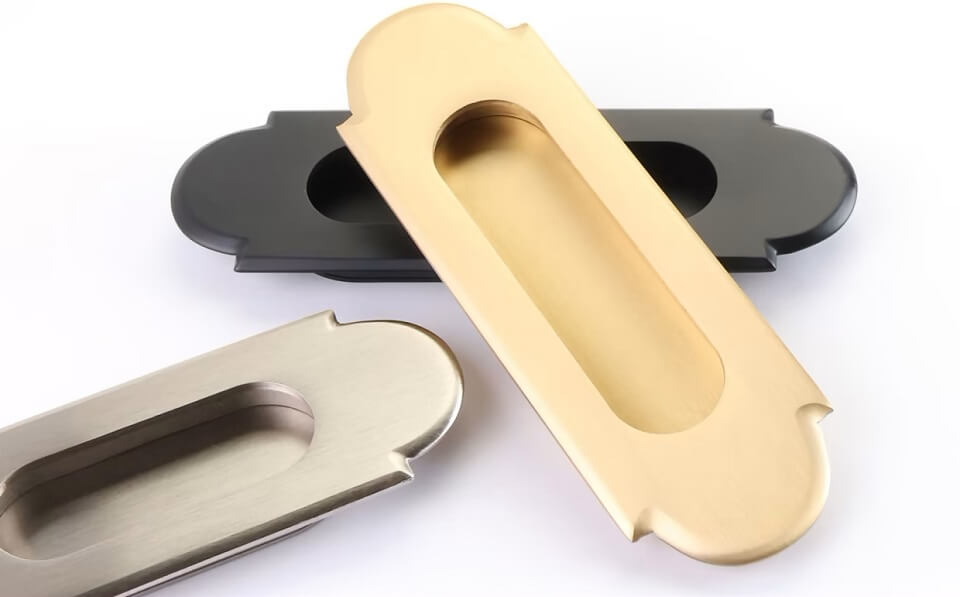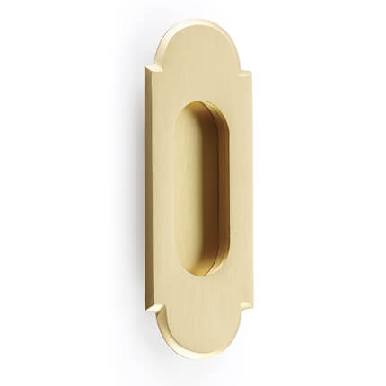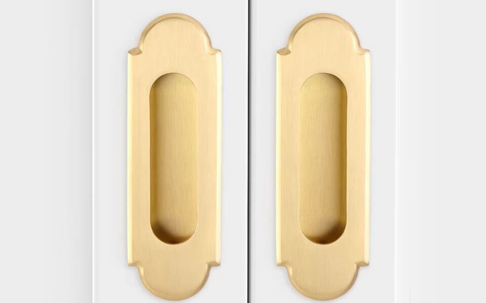 The Emtek 2205 Brass Flush Door Pulls with Classic Curved #8 Design is a classic for sliding doors and pocket doors.