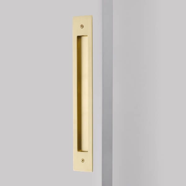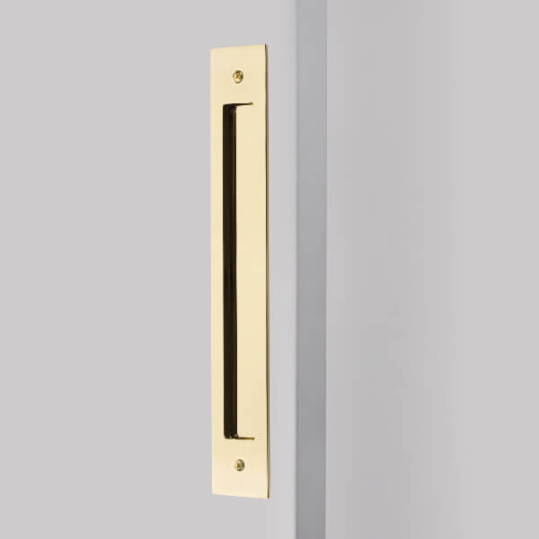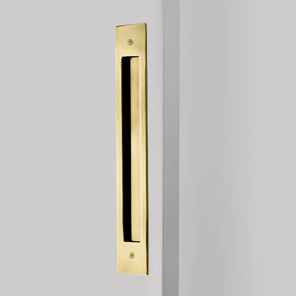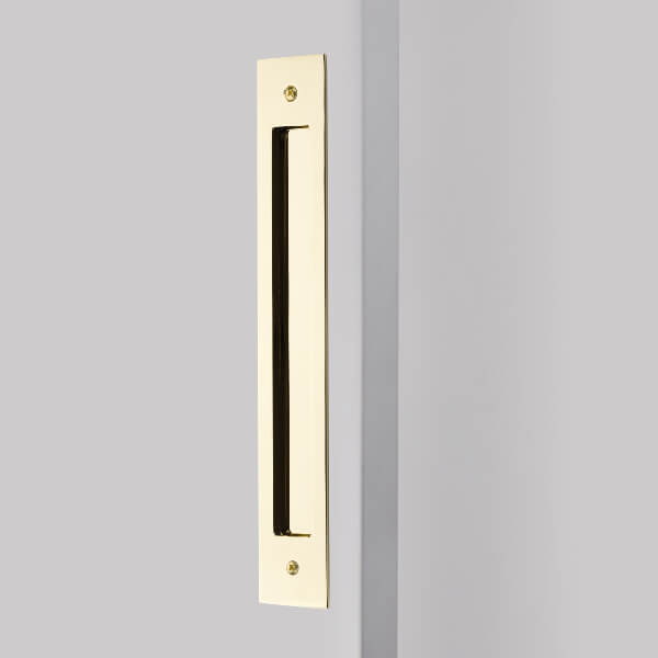 The Emtek 220314 Brass Flush Door Pull - Modern Rectangular are a perfect match for sliding closet and other doors where a recessed pull would work well or as a flush cabinet drawer handle.