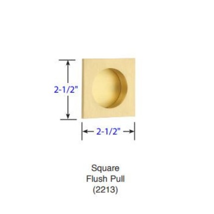 The Emtek 2213 Brass Square Flush Door Pull is designed for pocket doors or sliding doors. Overall dimensions are 2.5" x 2.5". Easy installation for standard 2-1/8" bore holes. Available in different Finishes.