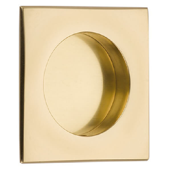 The Emtek 2213 Brass Square Flush Door Pull is designed for pocket doors or sliding doors.