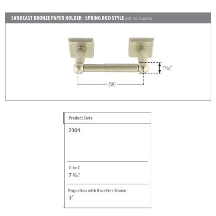 For a list of similar items, see our Website Emtek 2304 Sandcast Bronze Paper Holder Spring Rod Style with #2 Rosette, 7-5/16” CTC Length