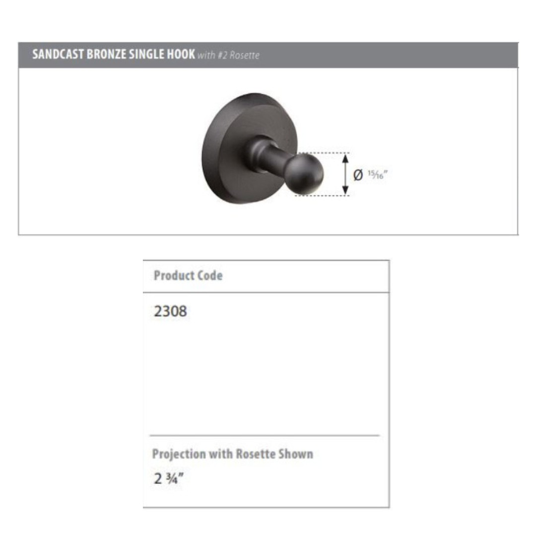 For a list of similar items, see our Website Emtek 2308 Sandcast Bronze Single Hook with #1 Rosette, 15/16” Hook Dia.
