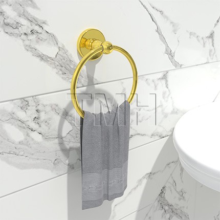 Emtek Traditional Brass Towel Ring with Brass Watford Rosette is a Bathroom accessory design with a unique and different Rosette style. The Towel Ring in the Emtek brass line are composed of solid brass with a plated finish of your choice.