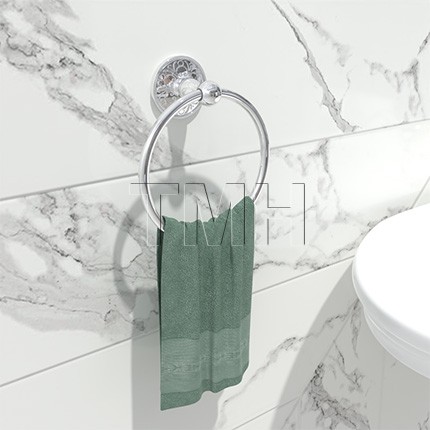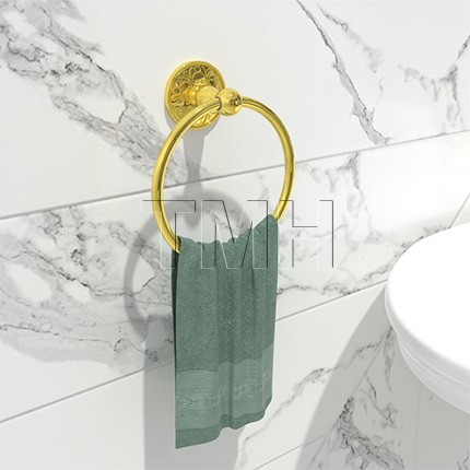Emtek Traditional Brass Towel Ring with Lancaster Rosette is a Bathroom accessory design with a unique and different Rosette style. The Towel Ring in the Emtek brass line are composed of solid brass with a plated finish of your choice.