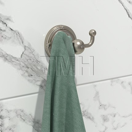 Emtek Traditional Brass Double Hook with Brass Ribbon & Read Rosette is a Bathroom accessory design with a unique and different Rosette style. The Double Hook in the Emtek brass line are composed of solid brass with a plated finish of your choice. Screws are included.