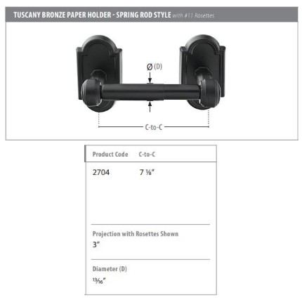 Emtek Tuscany Bronze Paper Holder Spring Rod Style With #11 Rosette Features: