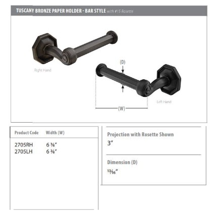 Emtek Tuscany Bronze Paper Holder Bar Style with #11 Rosette Left Hand is a Bathroom accessory design with a unique and different Rosette style. The Paper Holder in the Emtek Medium Bronze Patina are composed of Steel with a plated finish of your choice.