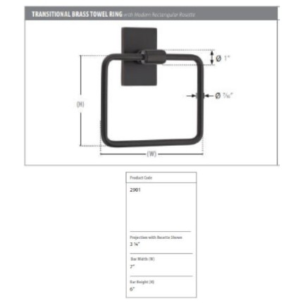 For a list of similar items, see our Website Emtek 2901 Transitional Brass Towel Ring with Brass Modern Rectangular Rosette, 7” Overall Dimension