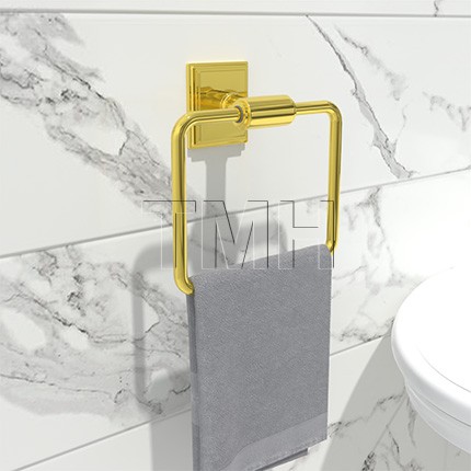 Emtek Transitional Brass Towel Ring with Brass Wilshire Rosette is a Bathroom accessory design with a unique and different Rosette style. The Towel Ring in the Emtek brass line are composed of solid brass with a plated finish of your choice.