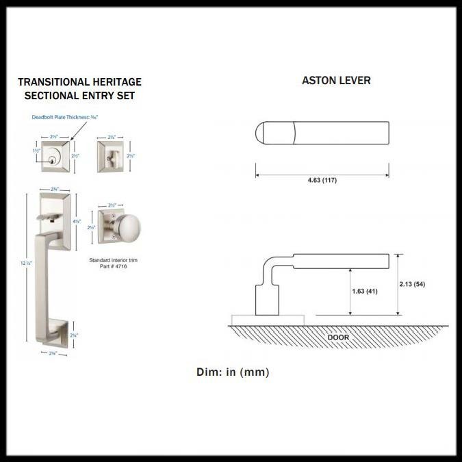 Parts IncludedTransitional Heritage Sectional Entry Set, Aston Lever, Strike Plate, Latch, Screws