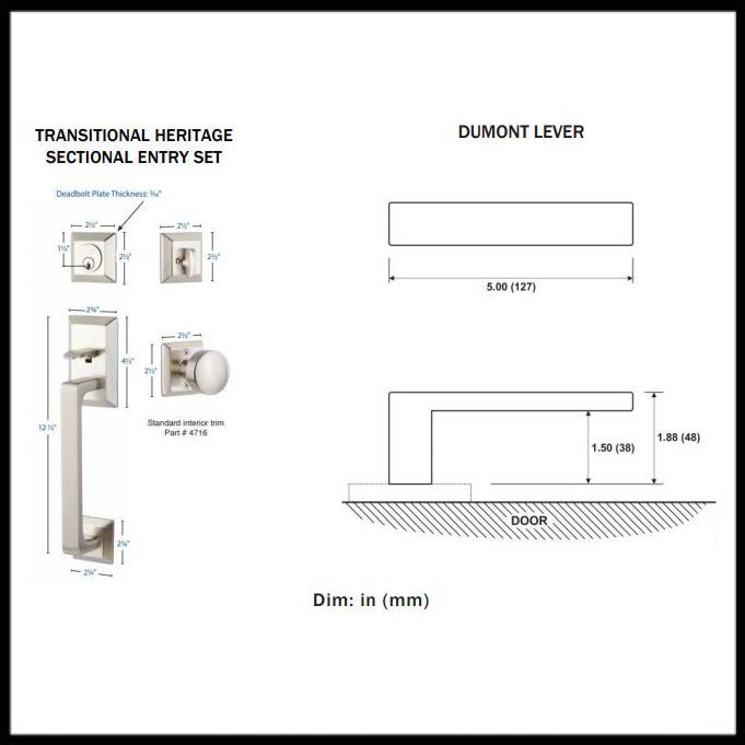 Parts IncludedTransitional Heritage Sectional Entry Set, Dumont Lever, Strike Plate, Latch, Screws
