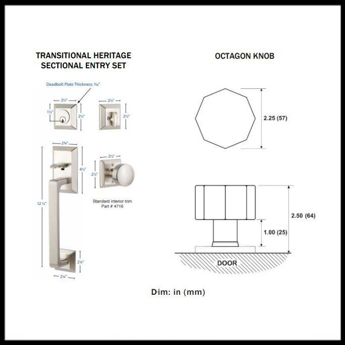 Parts IncludedTransitional Heritage Sectional Entry Set, Octagon Knob, Strike Plate, Latch, Screws