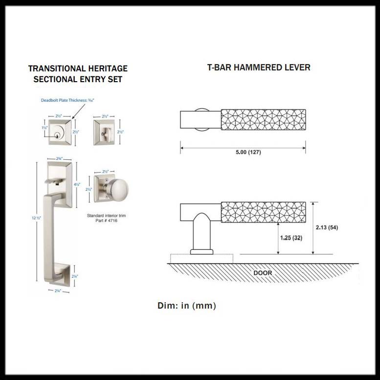 Parts IncludedTransitional Heritage Sectional Entry Set, T-Bar Hammered Lever, Strike Plate, Latch, Screws