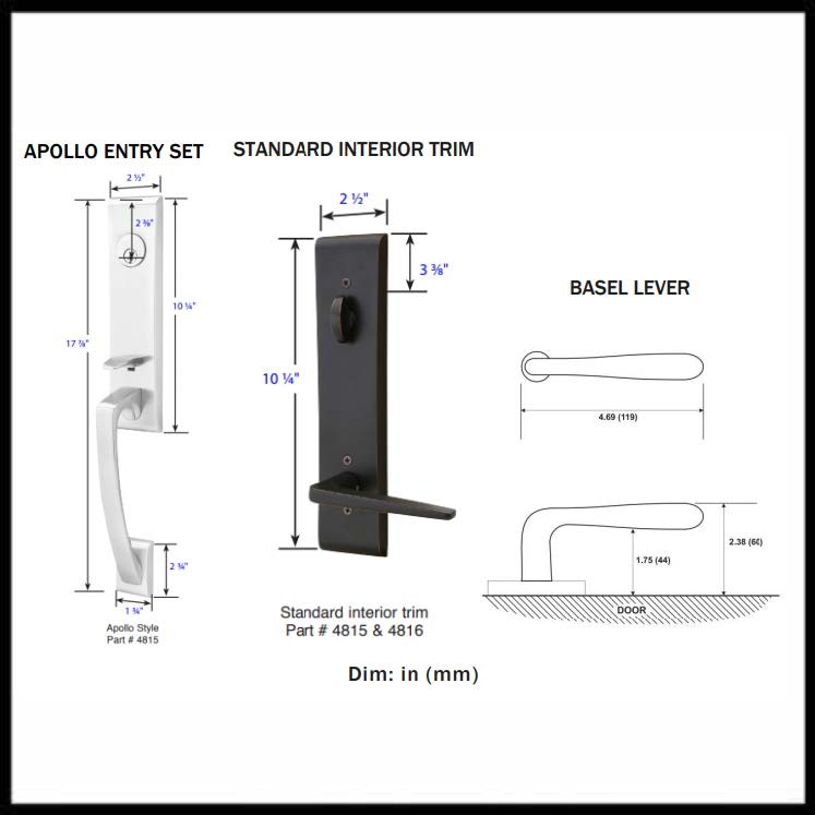 Parts IncludedApollo Entry Set, Basel Lever, Strike Plate, Latch, Screws