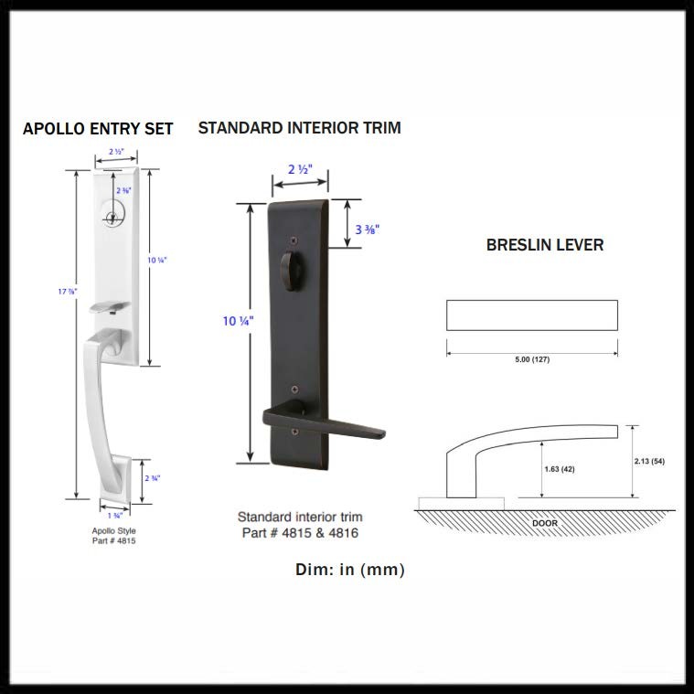 Parts IncludedApollo Entry Set, Breslin Lever, Strike Plate, Latch, Screws