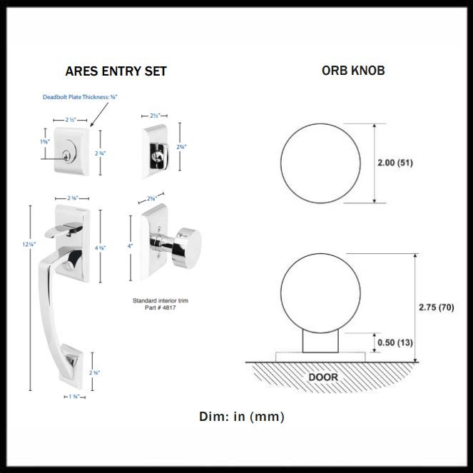Parts IncludedAres Entry Set, Orb Knob, Strike Plate, Latch, Screws