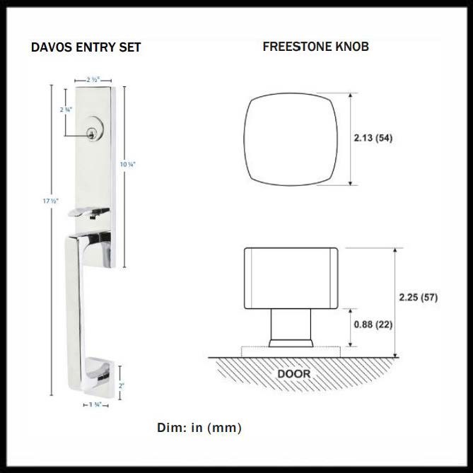 Parts IncludedDavos Entry Set, Freestone Knob, Strike Plate, Latch, Screws