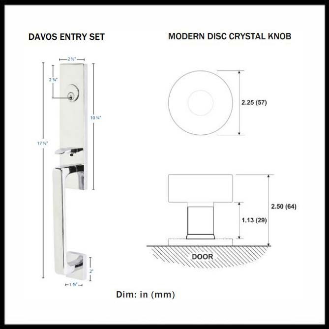 Parts IncludedDavos Entry Set, Modern Disc Crystal Knob, Strike Plate, Latch, Screws