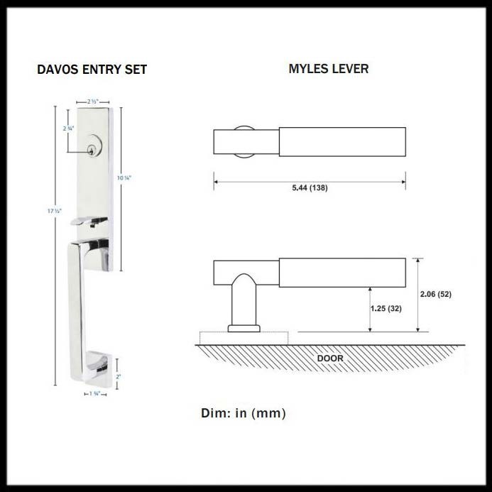 Parts IncludedDavos Entry Set, Myles Lever, Strike Plate, Latch, Screws