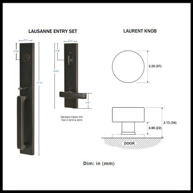 Parts IncludedLausanne Entry Set, Laurent Knob, Strike Plate, Latch, Screws