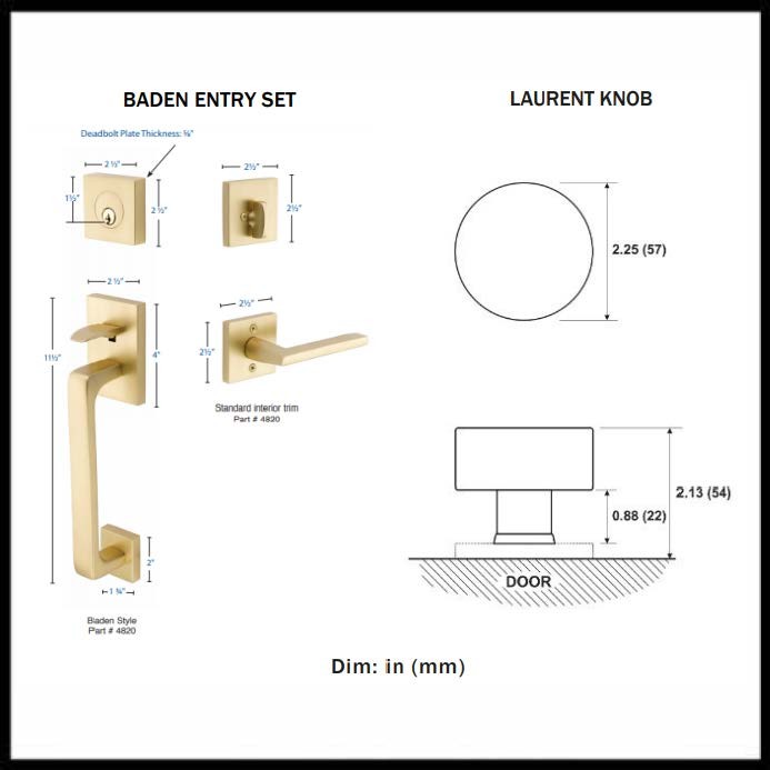 Parts IncludedBaden Entry Set, Laurent Knob, Strike Plate, Latch, Screws