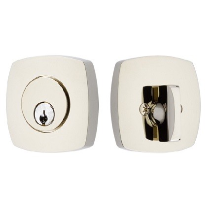 Emtek #8426 Urban Modern deadbolts are the perfect choice for securing your home. Deadbolts are available in a variety of finishes that will match your door handles. Choose from Single Cylinder, Double Cylinder, or EMPowered deadbolts to suit your needs. This product is sold as a complete set and includes a Heavy Gauge Steel Understrike and Brass Trim Strike.