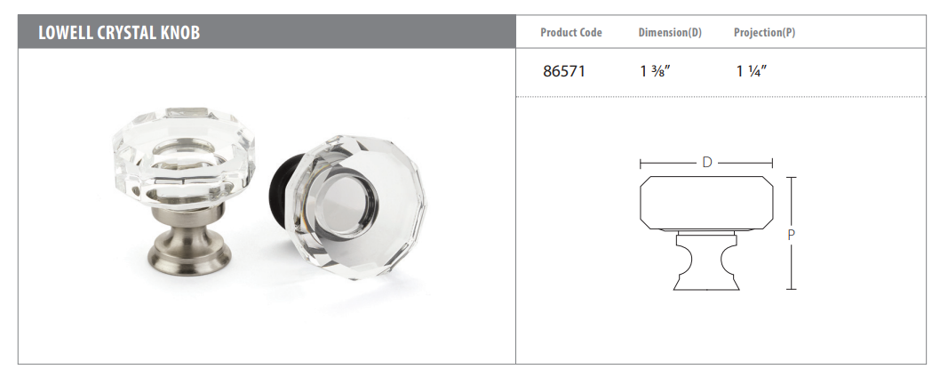Emtek 86571 Lowell Crystal Knob is part of the crystal knob series, and is available in a selection of finishes.
