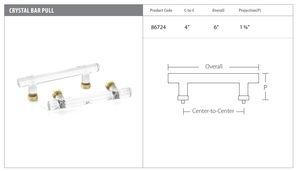 Emtek 86724 Crystal Bar Pull is a unique and contemporary molded glass pull. Pull is crafted to add a touch of modern romance wherever it is installed. Available in a large selection of finishes of your choice.