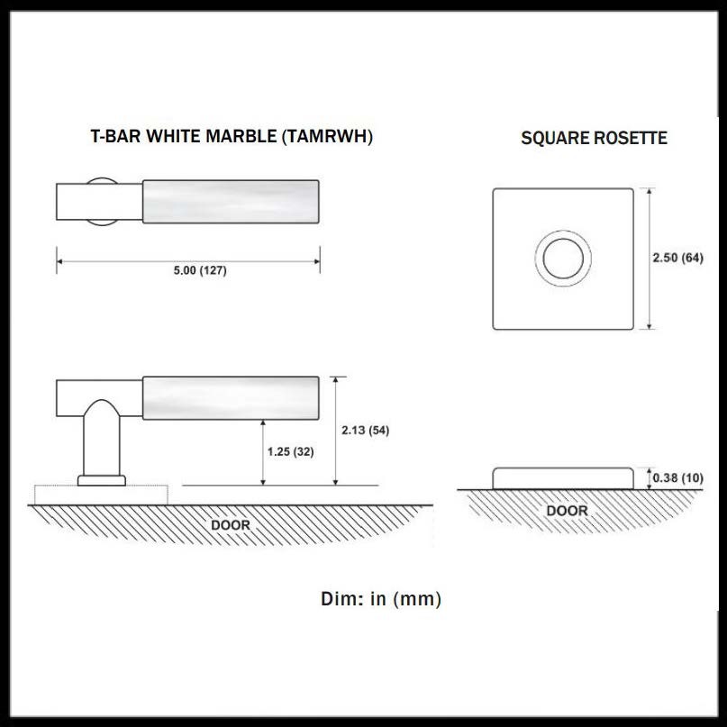 This Contemporary Door Handle Lever is Modern Brass and will give any door a unique style. The Emtek T-Bar White Marble Lever has a Square Rosette and fits any door between 1-3/8” to 2-1/4" thick with a 2-1/8" bore standard door prep. Standard latch is for 2-3/8" backset. Includes Latch and Strike Plate. Available in a variety of different finishes.