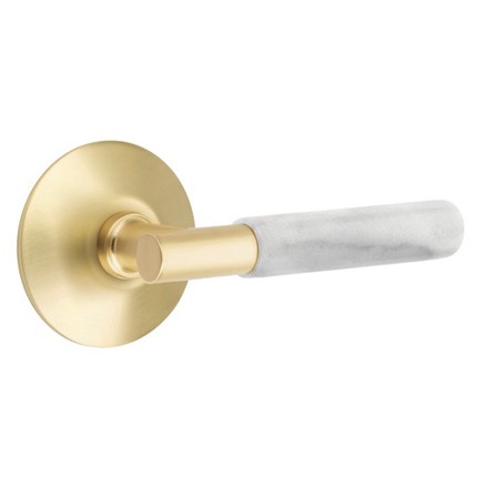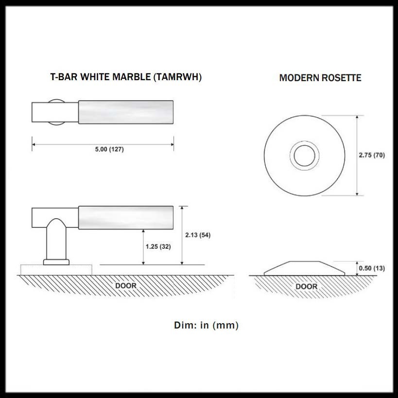 This Contemporary Lever is Modern Brass and will give any door a unique style. The Emtek T-Bar White Marble Lever has a Modern Rosette and fits any door between 1-3/8” to 2-1/4" thick with a 2-1/8" bore standard door prep. Standard latch is for 2-3/8" backset. Includes Latch and Strike Plate. Available in a variety of different finishes.