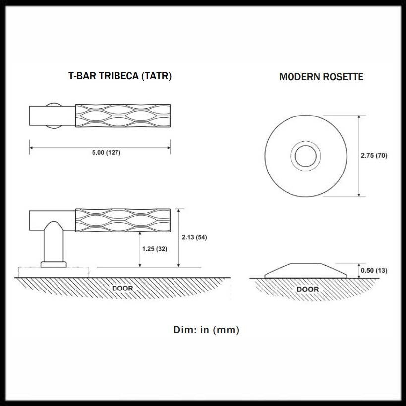 This Contemporary Lever is Modern Brass and will give any door a unique style. The Emtek T-Bar Tribeca Lever has a Modern Rosette and fits any door between 1-3/8” to 2-1/4" thick with a 2-1/8" bore standard door prep. Standard latch is for 2-3/8" backset. Includes Latch and Strike Plate. Available in a variety of different finishes.