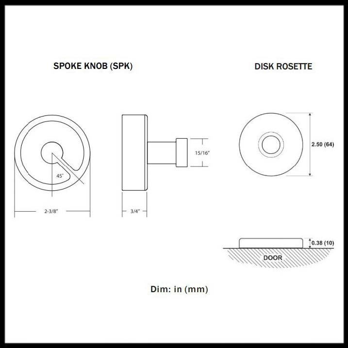 This Contemporary doorknob is Modern Brass and will give any door a unique style. The Emtek Spoke Knob has a Disk Rosette and fits any door between 1-3/8” to 2-1/4" thick with a 2-1/8" bore standard door prep. Standard latch is for 2-3/8" backset. Includes Latch and Strike Plate. Available in a variety of different finishes.