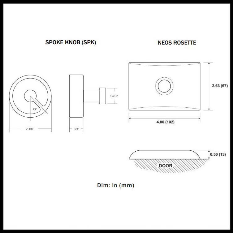 This Contemporary doorknob is Modern Brass and will give any door a unique style. The Emtek Spoke Knob has a Neos Rosette and fits any door between 1-3/8” to 2-1/4" thick with a 2-1/8" bore standard door prep. Standard latch is for 2-3/8" backset. Includes Latch and Strike Plate. Available in a variety of different finishes.