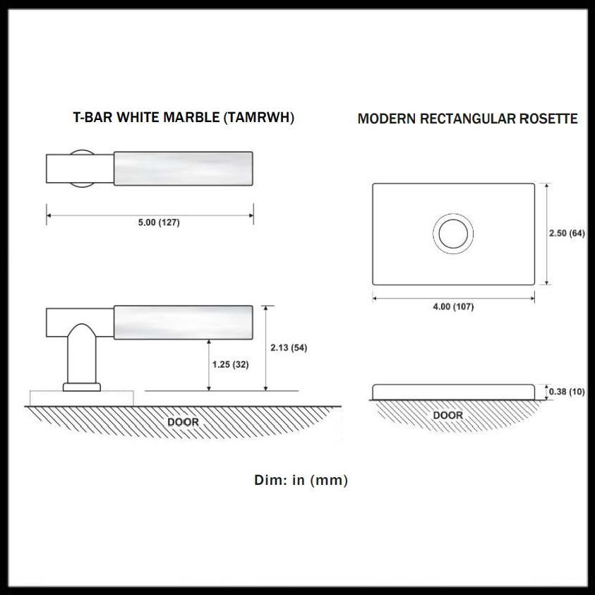 This Contemporary Lever is Modern Brass and will give any door a unique style. The Emtek T-Bar White Marble Lever has a Modern Rectangular Rosette and fits any door between 1-3/8” to 2-1/4" thick with a 2-1/8" bore standard door prep. Standard latch is for 2-3/8" backset. Includes Latch and Strike Plate. Available in a variety of different finishes.