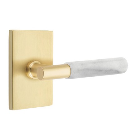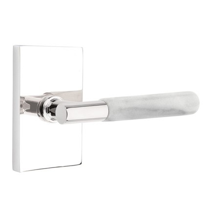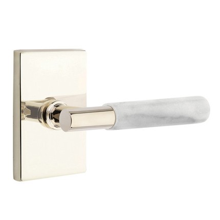 Emtek 5112TAMRWH Contemporary Modern Brass T-Bar White Marble Lever, Modern Rectangular Rosette