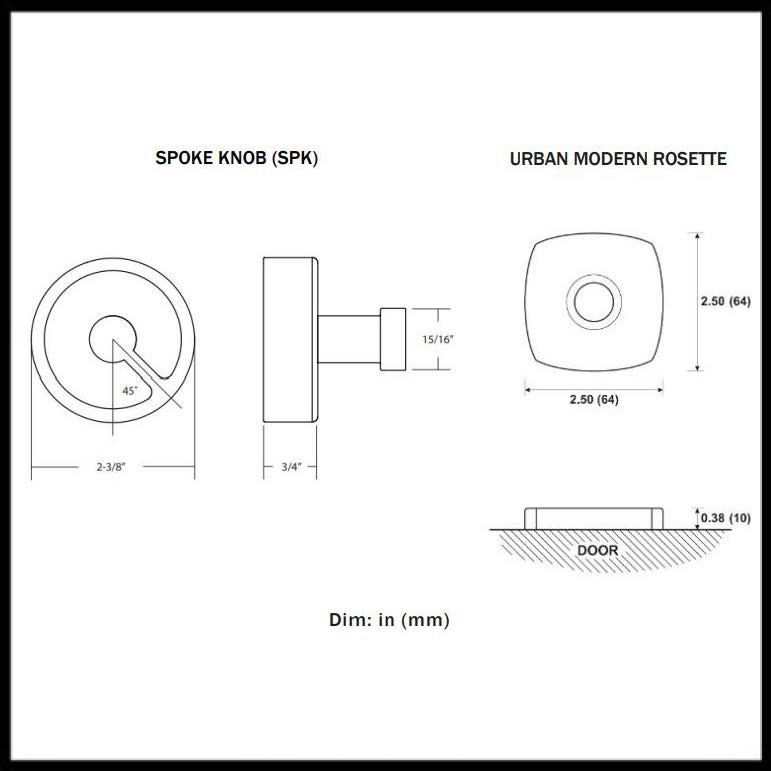 This Contemporary doorknob is Modern Brass and will give any door a unique style. The Emtek Spoke Knob has an Urban Modern Rosette and fits any door between 1-3/8” to 2-1/4" thick with a 2-1/8" bore standard door prep. Standard latch is for 2-3/8" backset. Includes Latch and Strike Plate. Available in a variety of different finishes.
