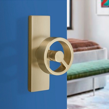 This Contemporary doorknob is Modern Brass and will give any door a unique style. The Emtek Spoke Knob has a Stretto Rosette and fits any door between 1-3/8” to 2-1/4" thick. Standard latch is for 2-3/8" backset. Includes Latch and Strike Plate. Available in a variety of different finishes.